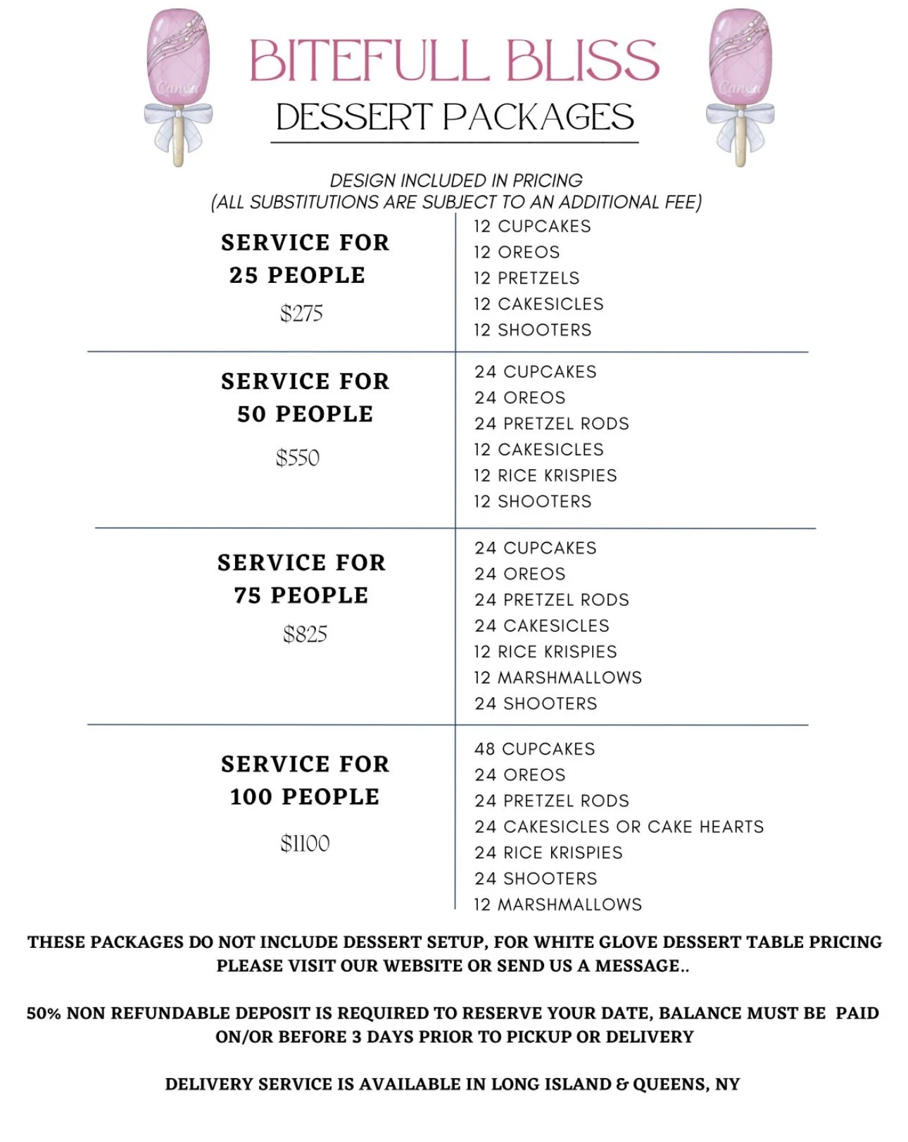 You may order a la carte by the dozen or send us a message to create a custom package for your next event.
